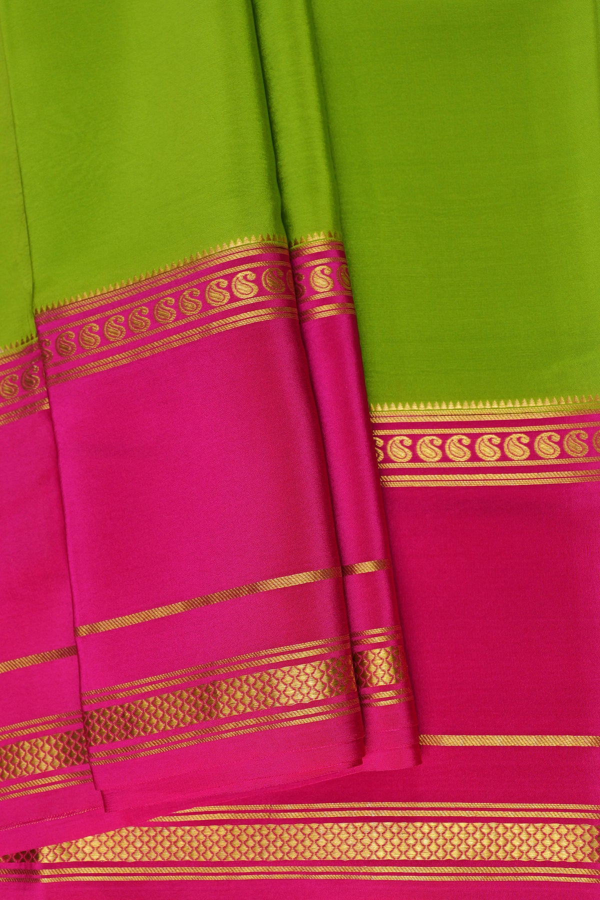Pure Gold Lace Mysore Silk Saree in Green and Pink with Bentex mango big border and Contrast Blouse