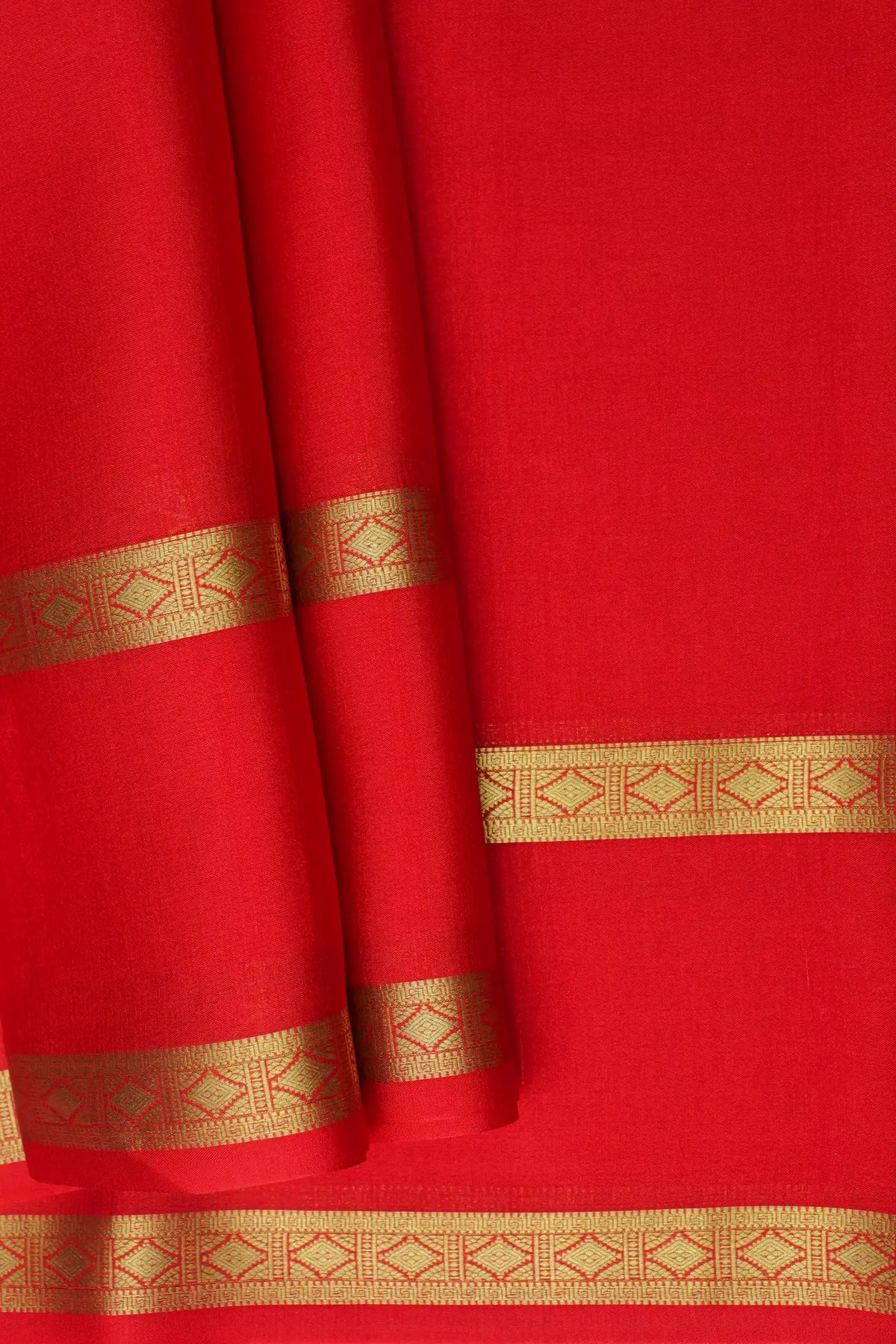 Self Bentex Border 50 GSM Pure Mysore Silk Saree in Red Color with Self Red Color Blouse
