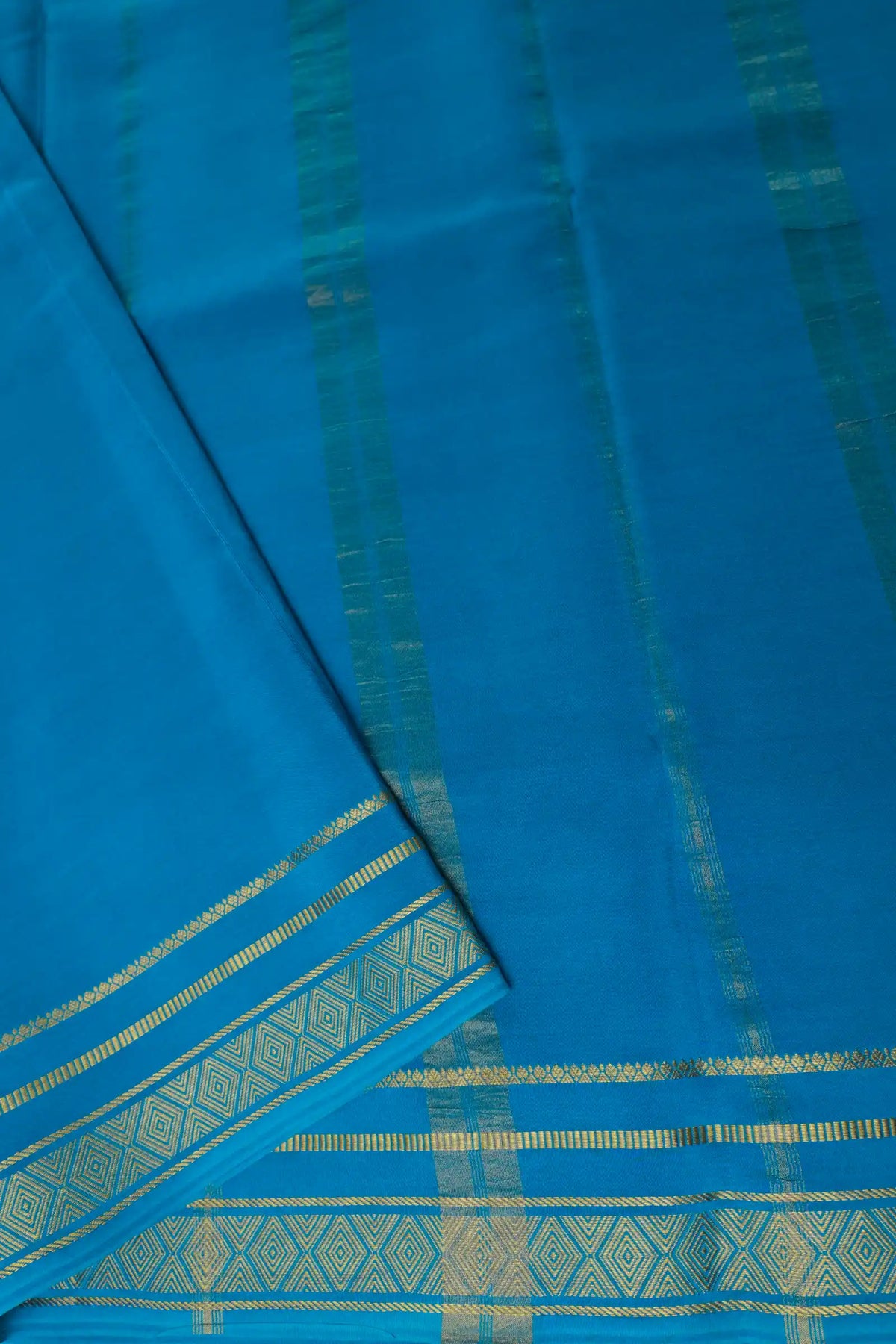 Diamond Border Pure Gold Lace Mysore Silk Saree in Yellow and Blue Color With Contrast Blue Color Blouse