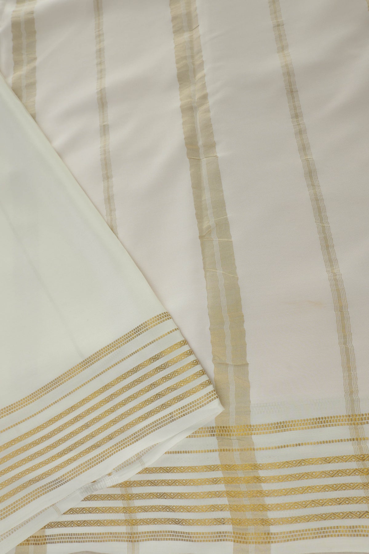 Pure Gold Lace Mysore Silk Saree In Pink and White Color With Contrast White Blouse