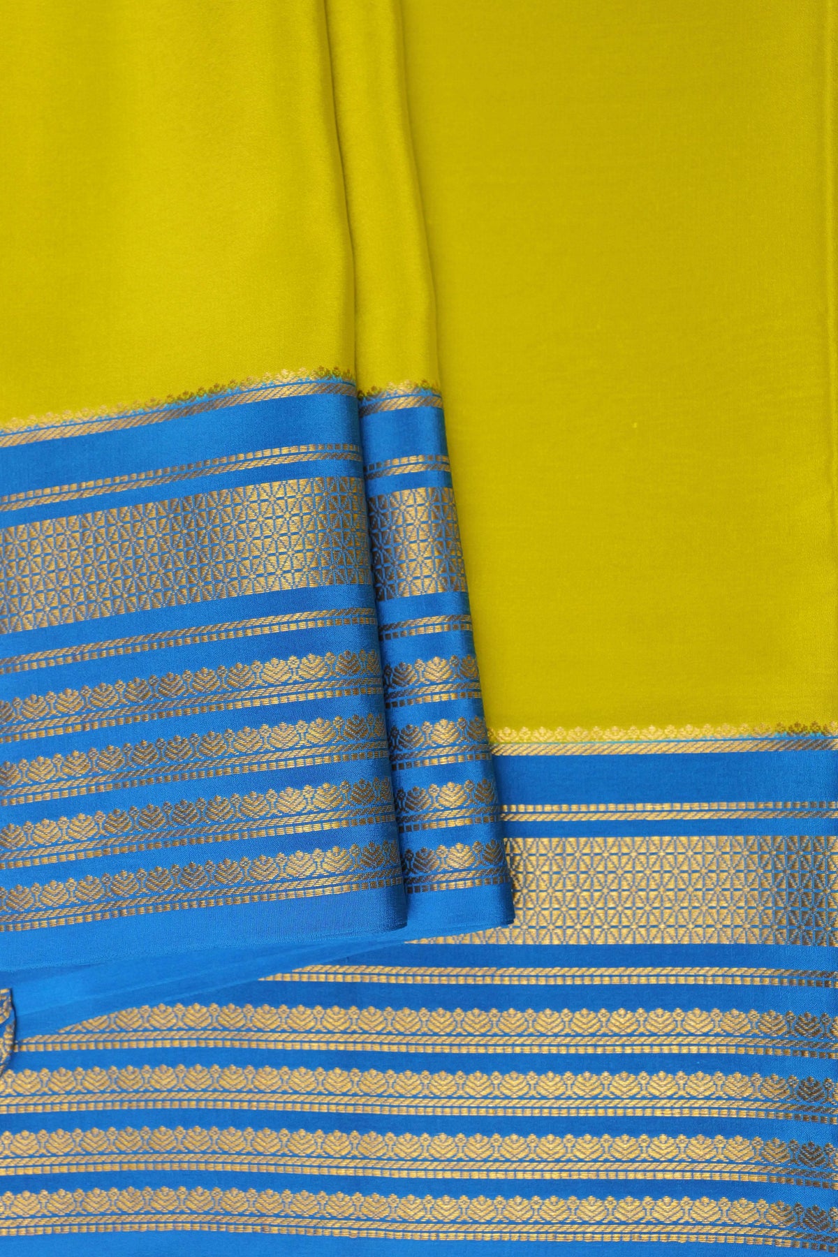 Big border Pure Gold Lace Mysore Silk Saree in Green and Blue Color with Contrast Blouse