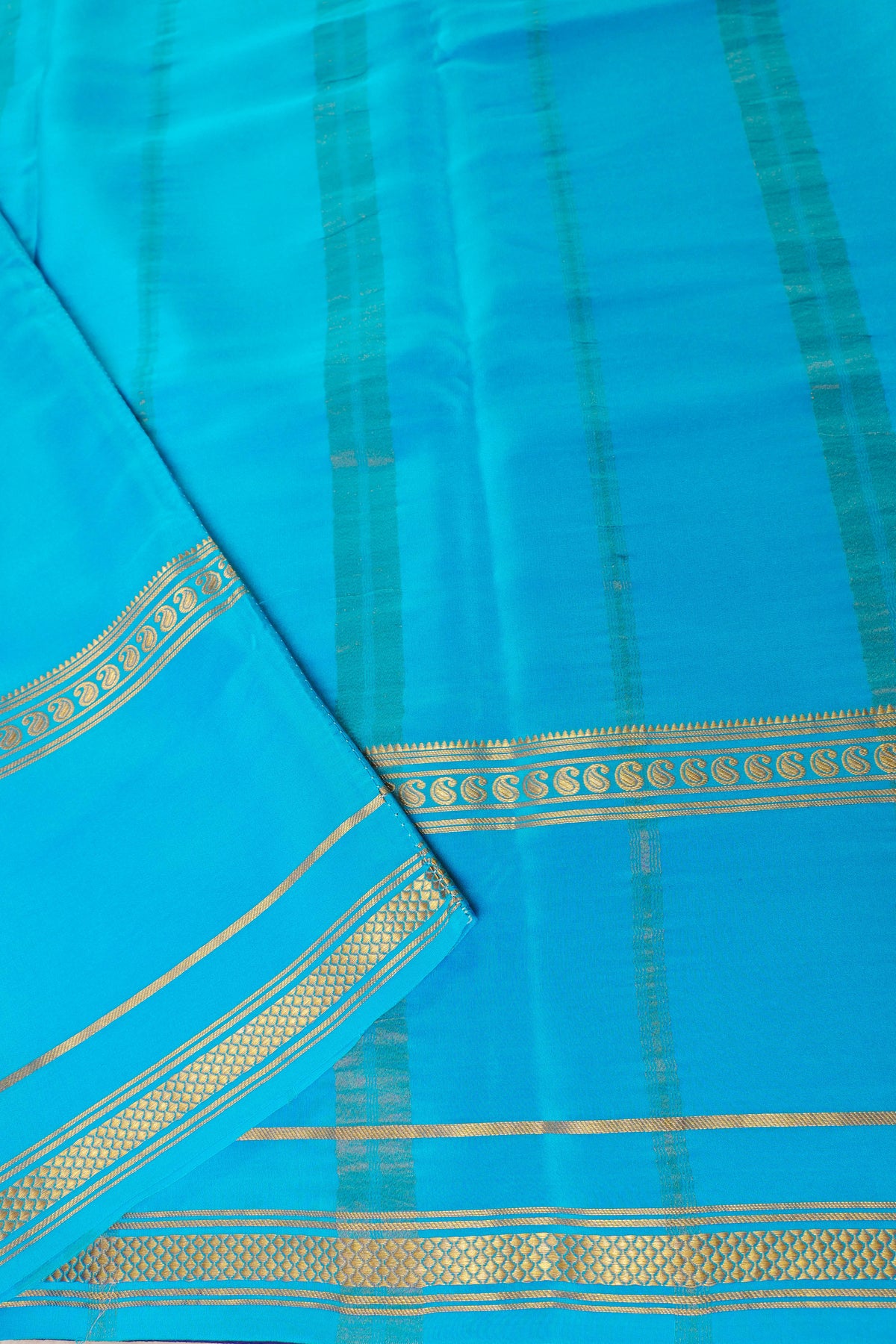 Purple and Sky Blue Color Pure 3D Gold Lace Mysore Silk Saree with Bentex mango big border and Contrast Blouse