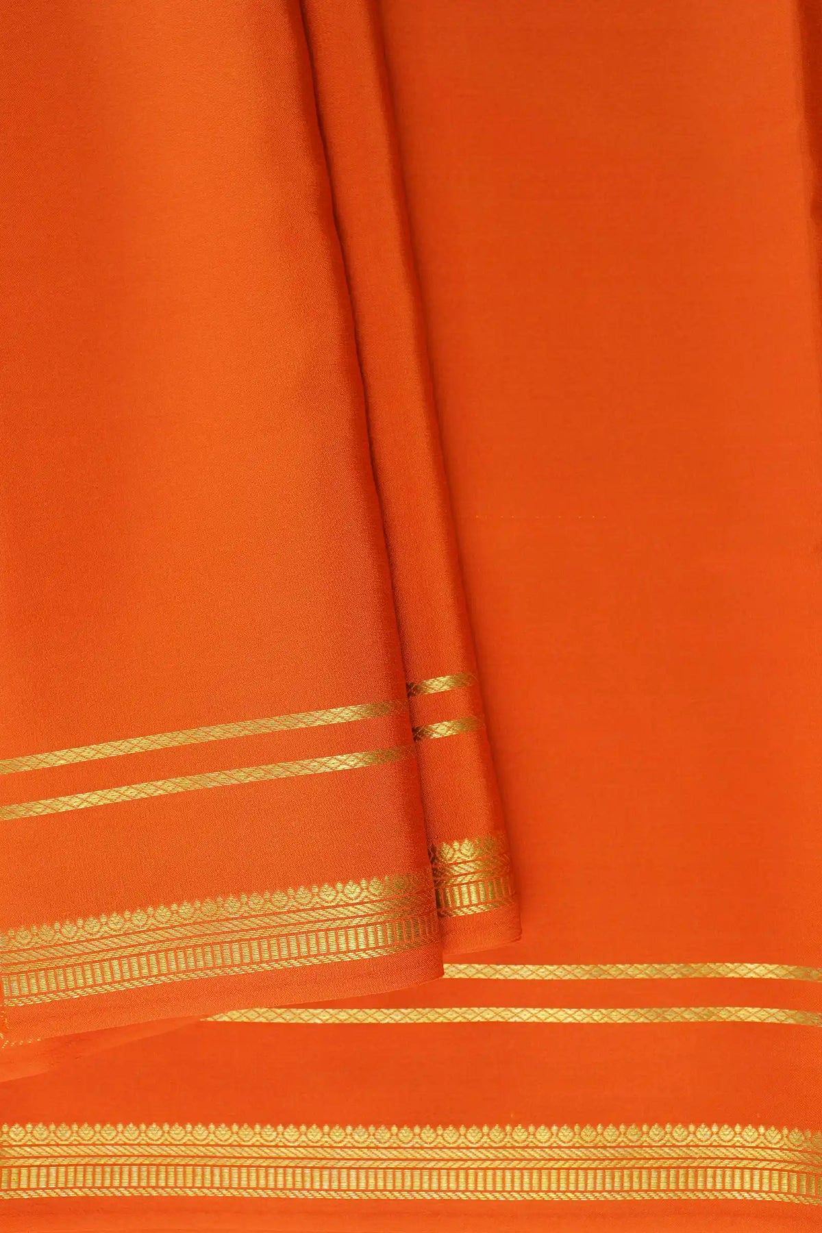 2 Line Bentex Gold Lace Border Pure Mysore Silk Saree in Orange Color With Self Orange Color Blouse