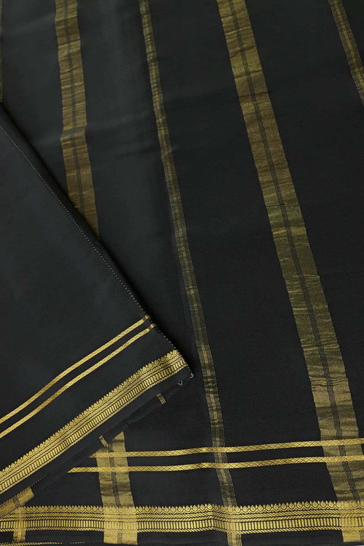 2 Line Bentex Gold Lace Border Pure Mysore Silk Saree in Orange and Black Color With Contrast Black Color Blouse