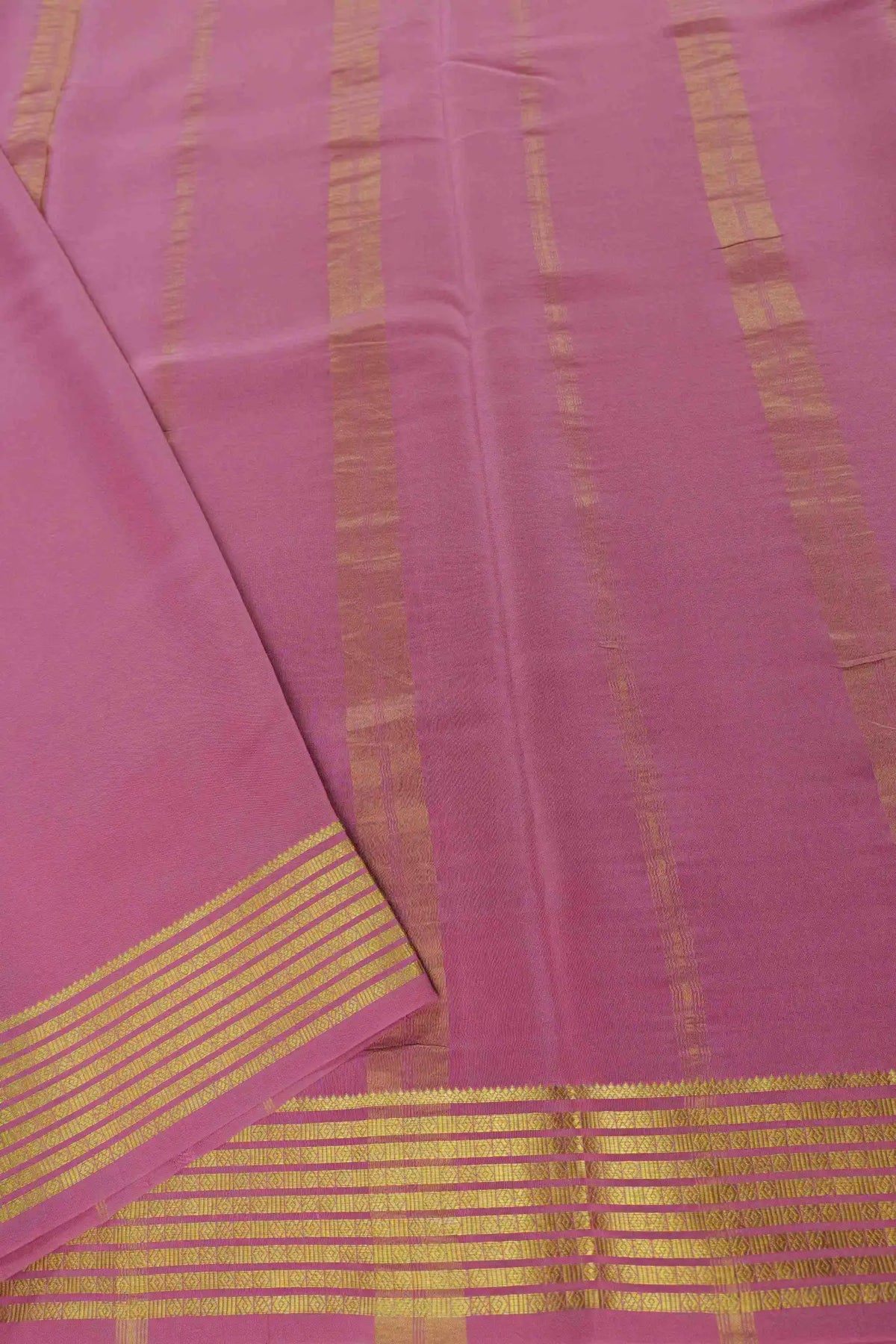 Mysore Silk Saree in Pink Color With Gold Lace Border and Self Pink Blouse
