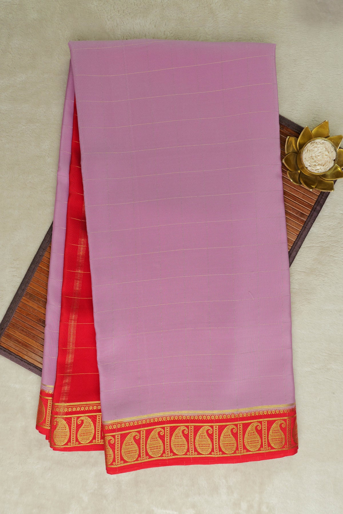 Discover pure Mysore silk sarees images with price at Atharva! This Mango border pure Mysore Silk Saree in pink and red offers a stunning color combination. The soft pink body paired with vibrant red creates an enchanting look, while the traditional Mango border adds divine elegance. Comes with a contrast red blouse piece, perfect for festive celebrations. Browse pure Mysore crepe silk sarees in bangalore at Atharva!