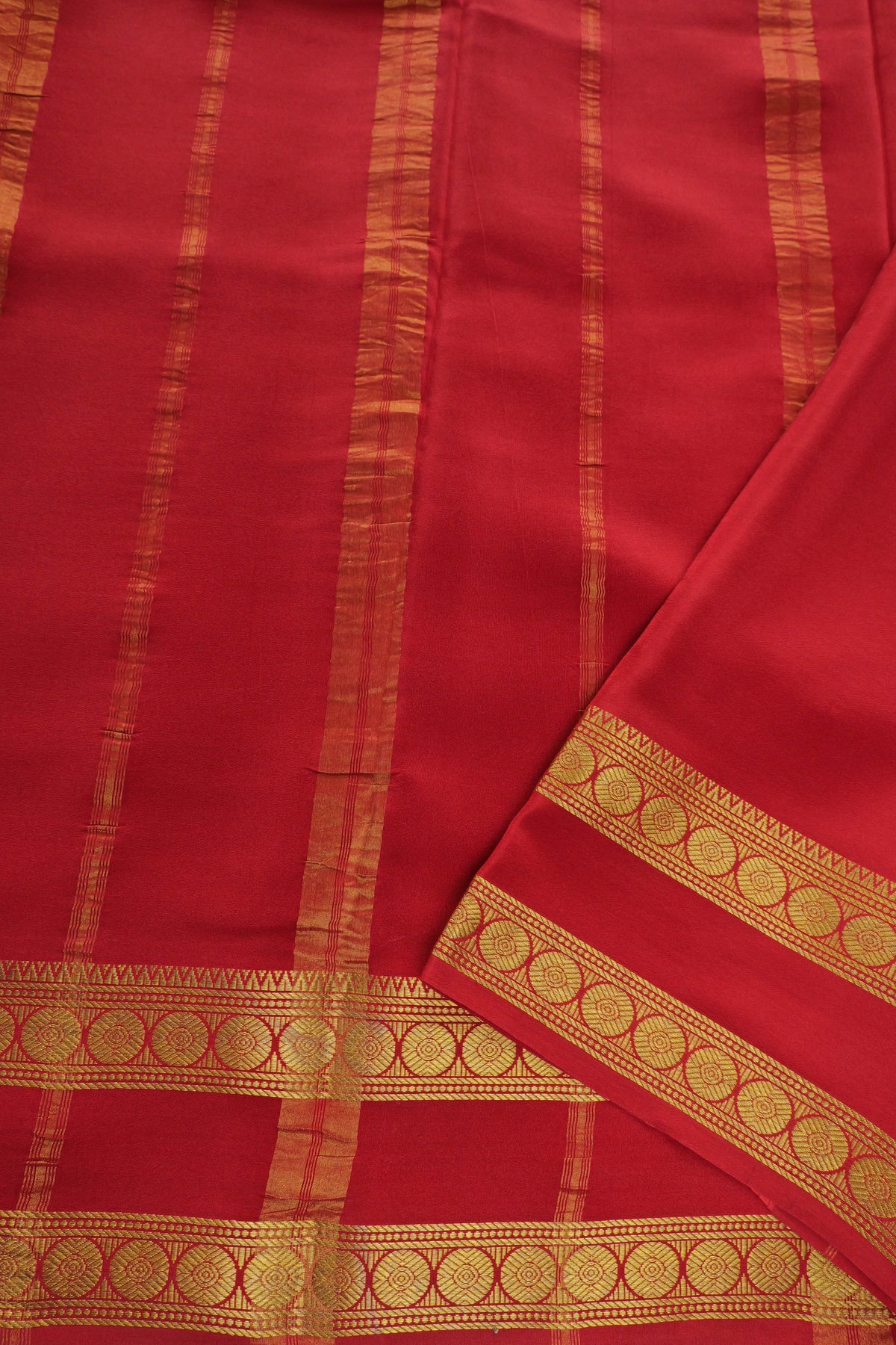 Bentex Border Pure Gold Lace Mysore Silk Saree In Green and Red Color With Contrast Red Blouse