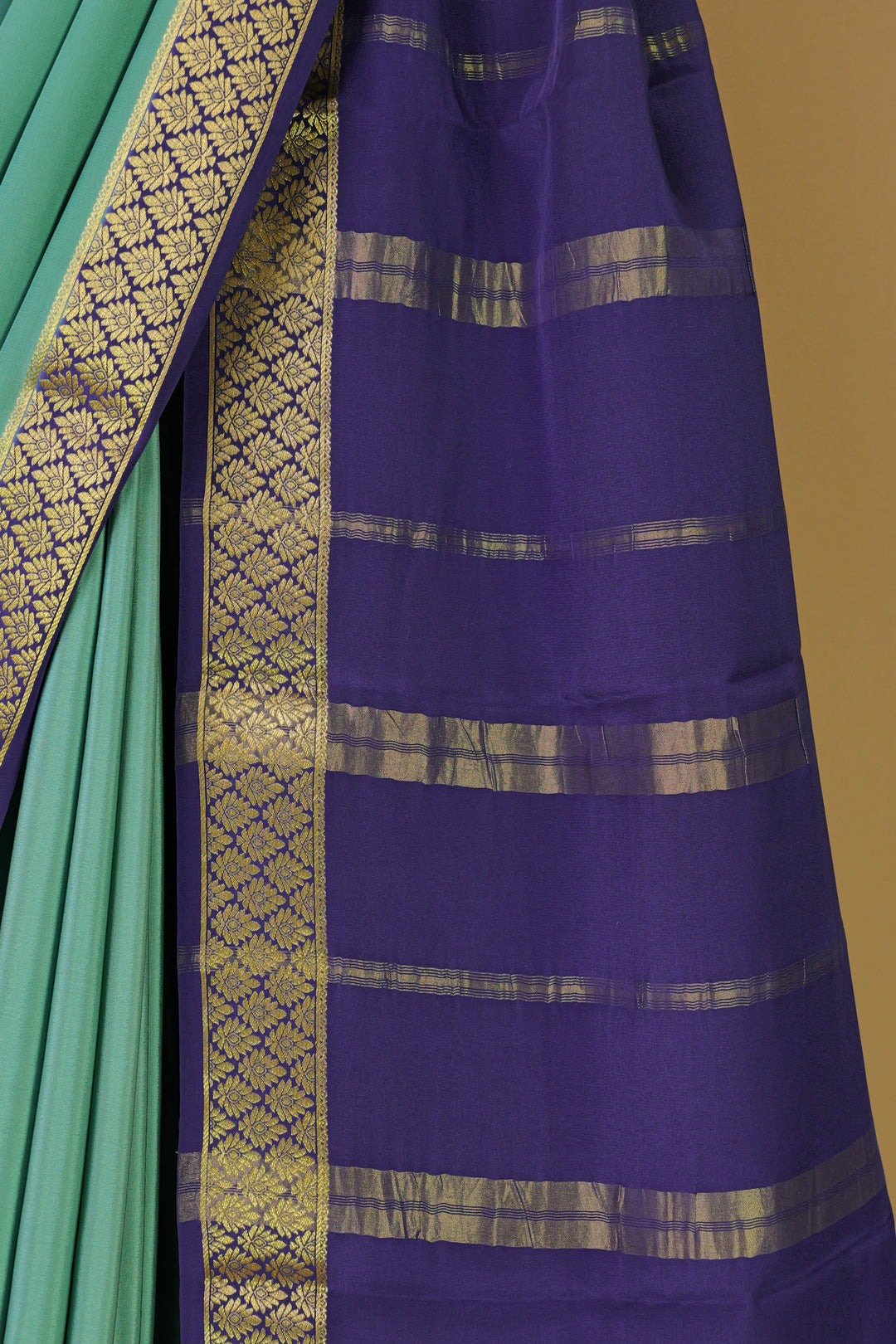PURE GOLD LACE MYSORE SILK SAREE IN CANEL BLUE AND NAVY BLUE WITH CONTRAST BOUSE | ATHARVA