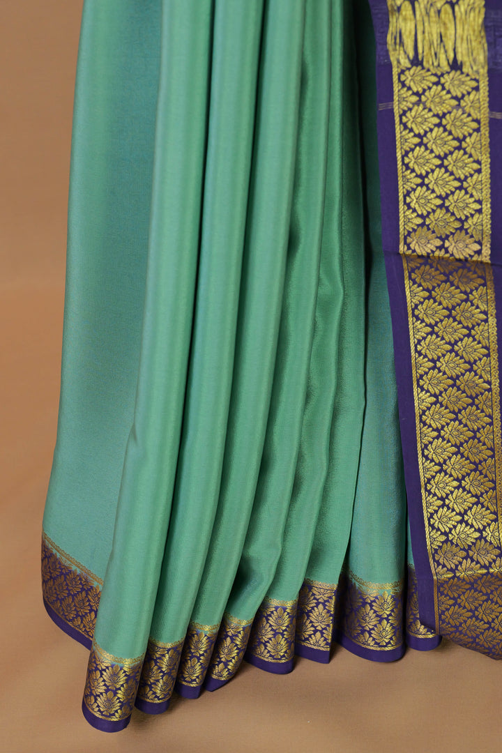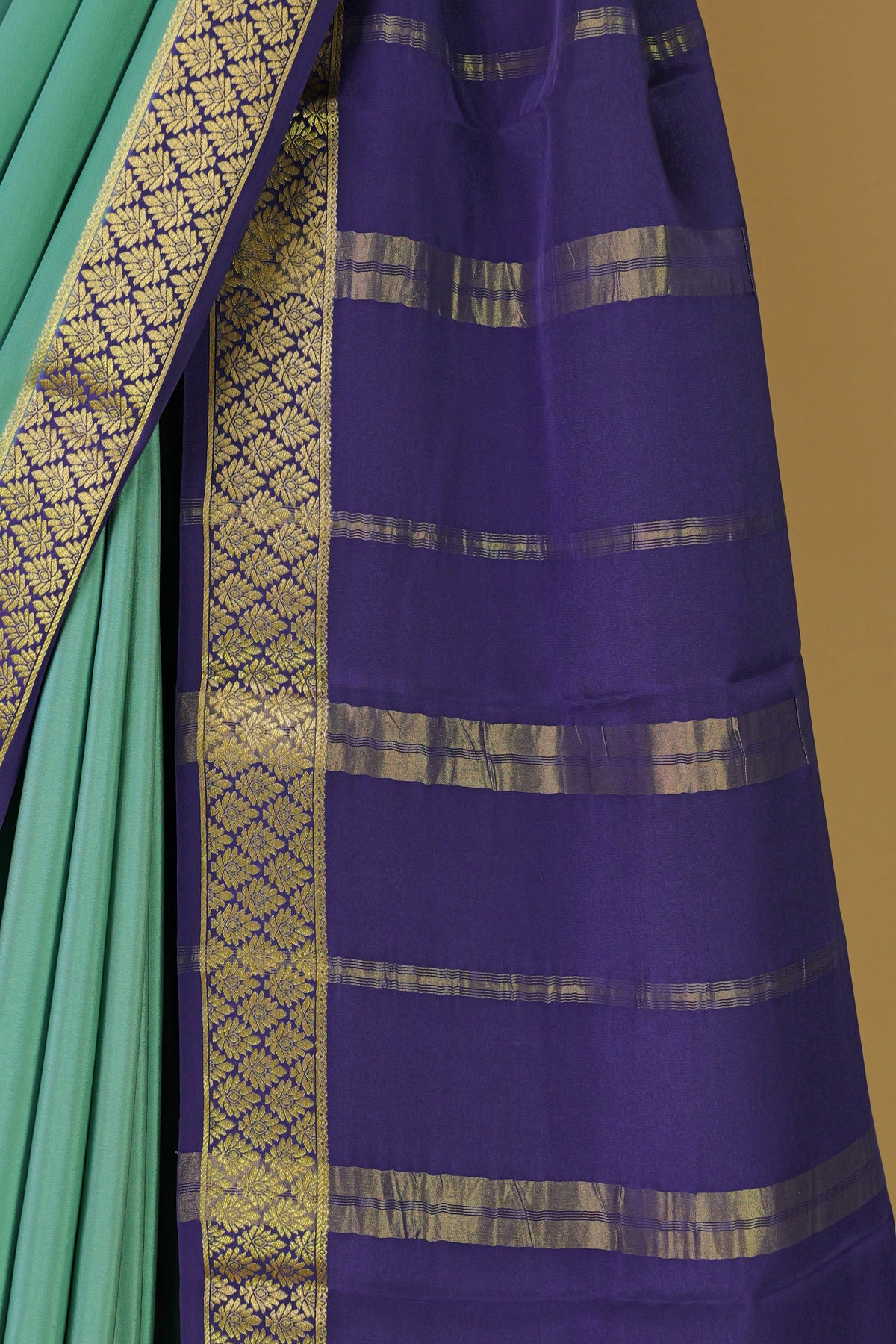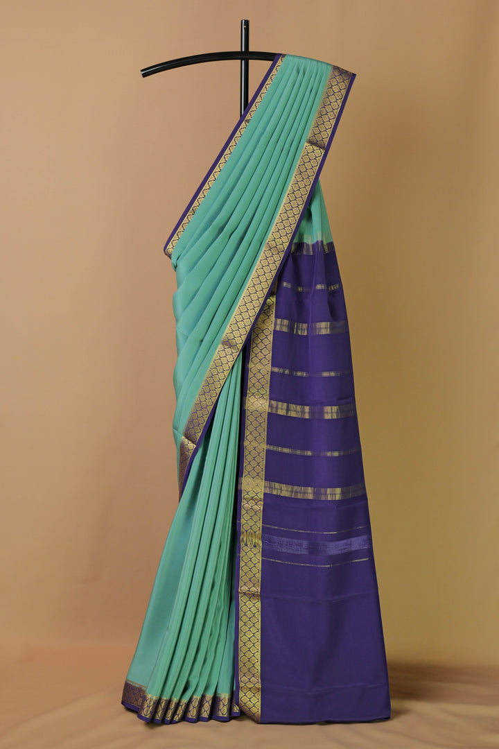 This canel blue and navy blue silk saree is perfect for anyone looking to buy Mysore silk saree online with confidence in quality, tradition, and style.